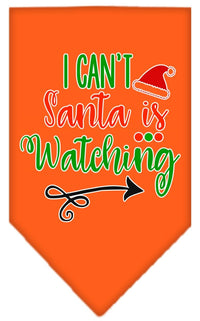 Christmas Pet and Dog Bandana Screen Printed, "I Can't, Santa Is Watching" Orange Large