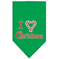 Christmas Pet and Dog Bandana Screen Printed, "I Heart Christmas" Emerald Green Small