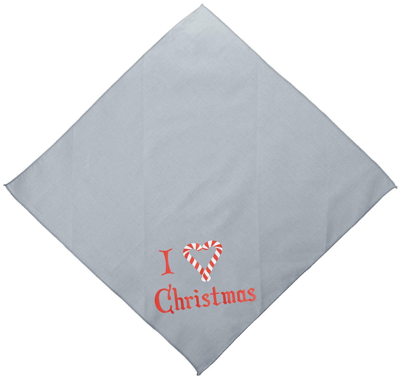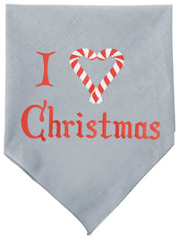 Christmas Pet and Dog Bandana Screen Printed, "I Heart Christmas" Grey Small