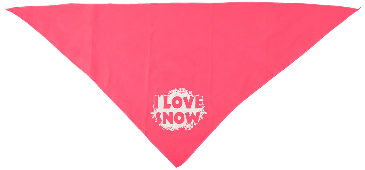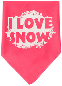 Christmas Pet and Dog Bandana Screen Printed, "I Love Snow" Bright Pink Large
