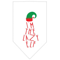 Christmas Pet and Dog Bandana Screen Printed, "I'm The Lazy Elf" White Large