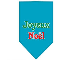 Christmas Pet and Dog Bandana Screen Printed, "Joyeux Noel" Turquoise Large