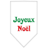 Christmas Pet and Dog Bandana Screen Printed, "Joyeux Noel" White Small