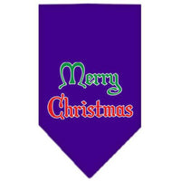 Christmas Pet and Dog Bandana Screen Printed, "Merry Christmas" Purple Small