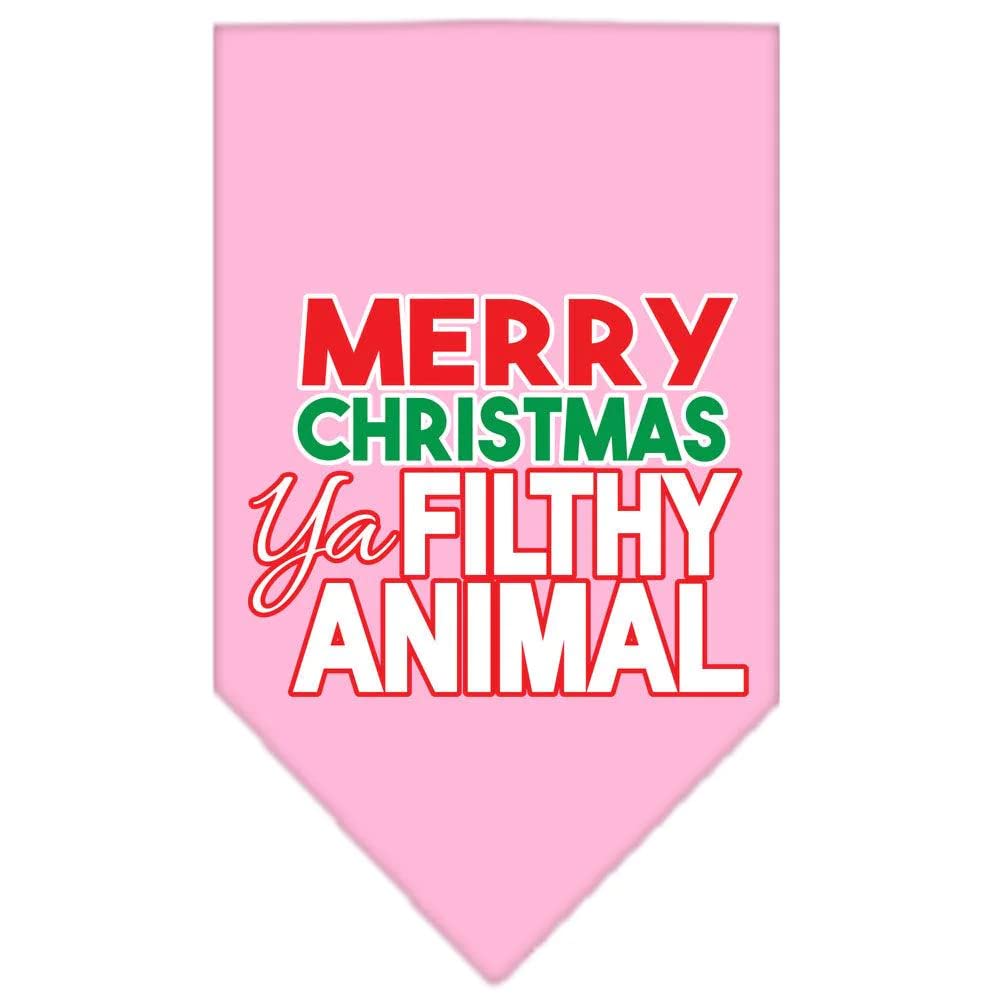 Christmas Pet and Dog Bandana Screen Printed, "Merry Christmas, Ya Filthy Animal" Light Pink Large