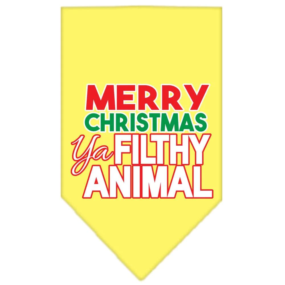 Q: What is the design of the bandana?A: The bandana features a fun holiday screen print that says 'Merry Christmas, Ya Filthy Animal,' making it a festive accessory for your pet.