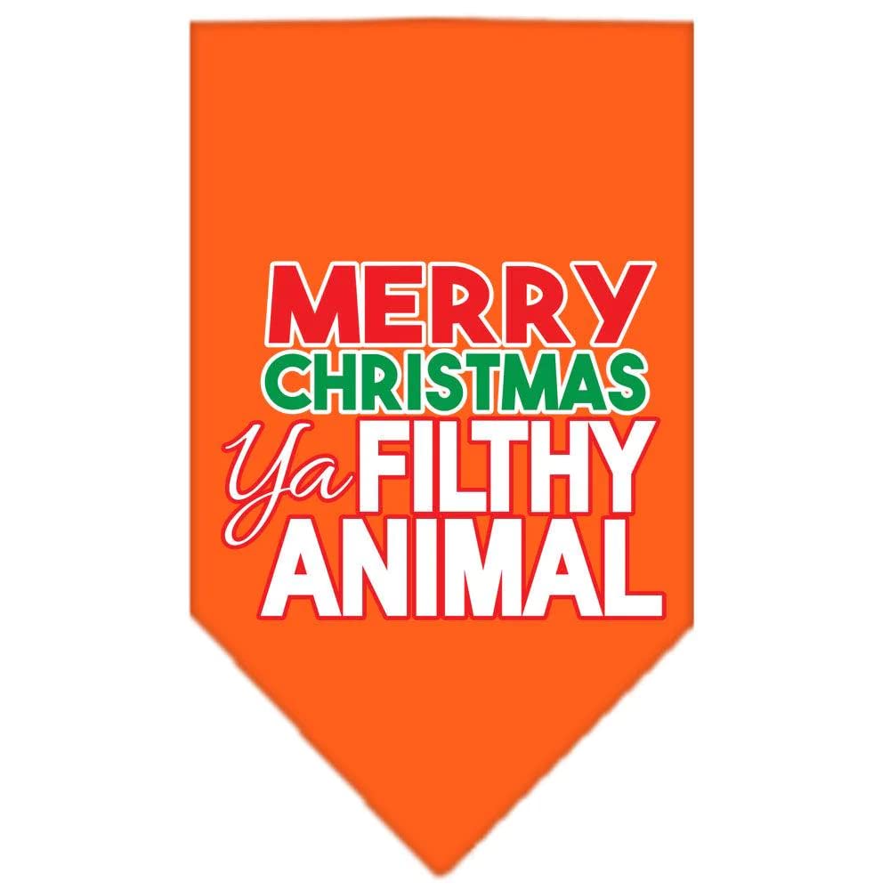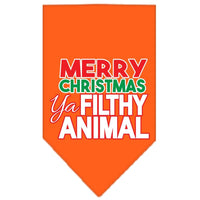 Christmas Pet and Dog Bandana Screen Printed, "Merry Christmas, Ya Filthy Animal" Orange Small