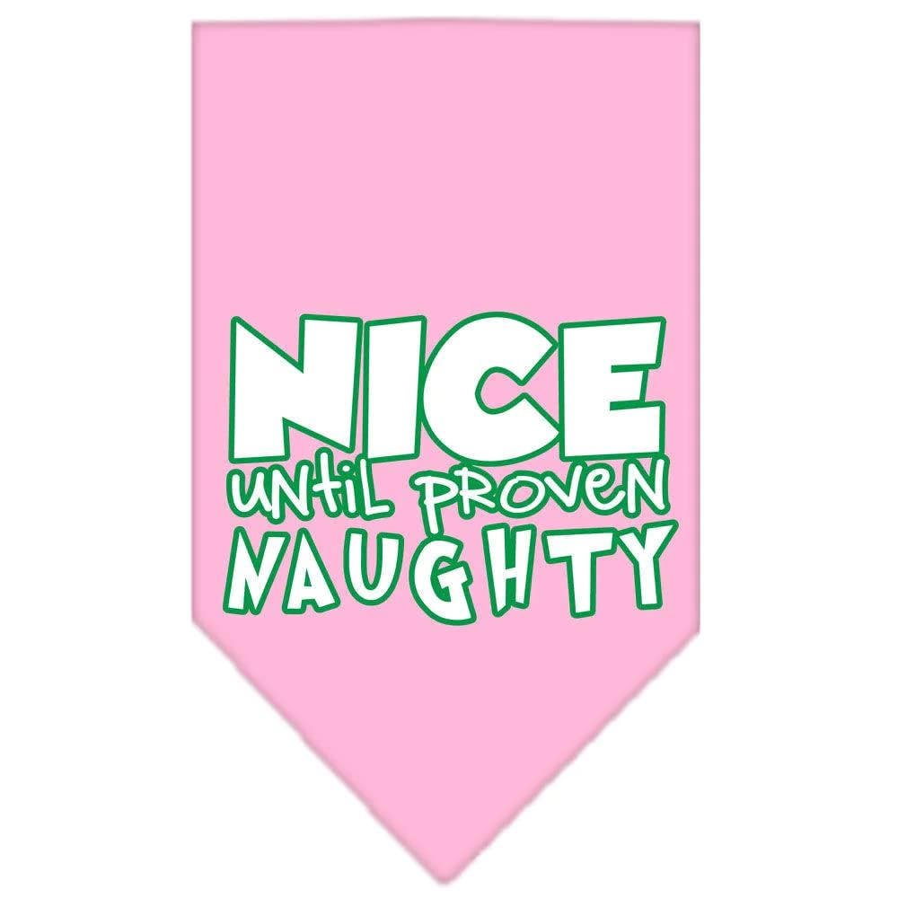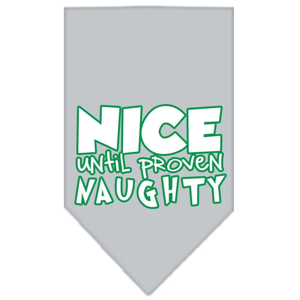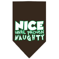 Q: What makes this bandana different from other dog bandanas?A: This bandana features a unique screen-printed design that reads 'Nice Until Proven Naughty', combined with rugged overlock stitching for enhanced durability.