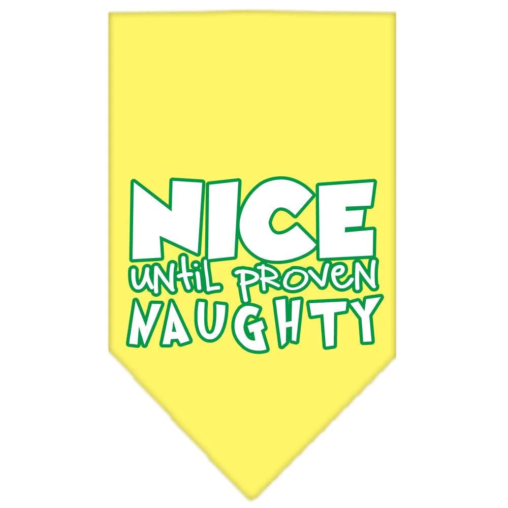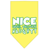Christmas Pet and Dog Bandana Screen Printed, "Nice Until Proven Naughty" Yellow Small