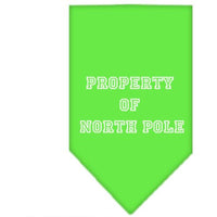Christmas Pet and Dog Bandana Screen Printed, "Property Of North Pole" Lime Green Large