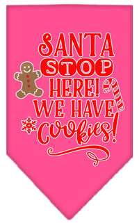 Christmas Pet and Dog Bandana Screen Printed, "Santa, Stop Here! We Have Cookies!" Bright Pink Small
