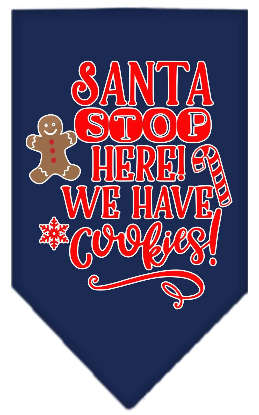 Christmas Pet and Dog Bandana Screen Printed, "Santa, Stop Here! We Have Cookies!" Navy Blue Large