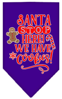 Christmas Pet and Dog Bandana Screen Printed, "Santa, Stop Here! We Have Cookies!" Purple Large