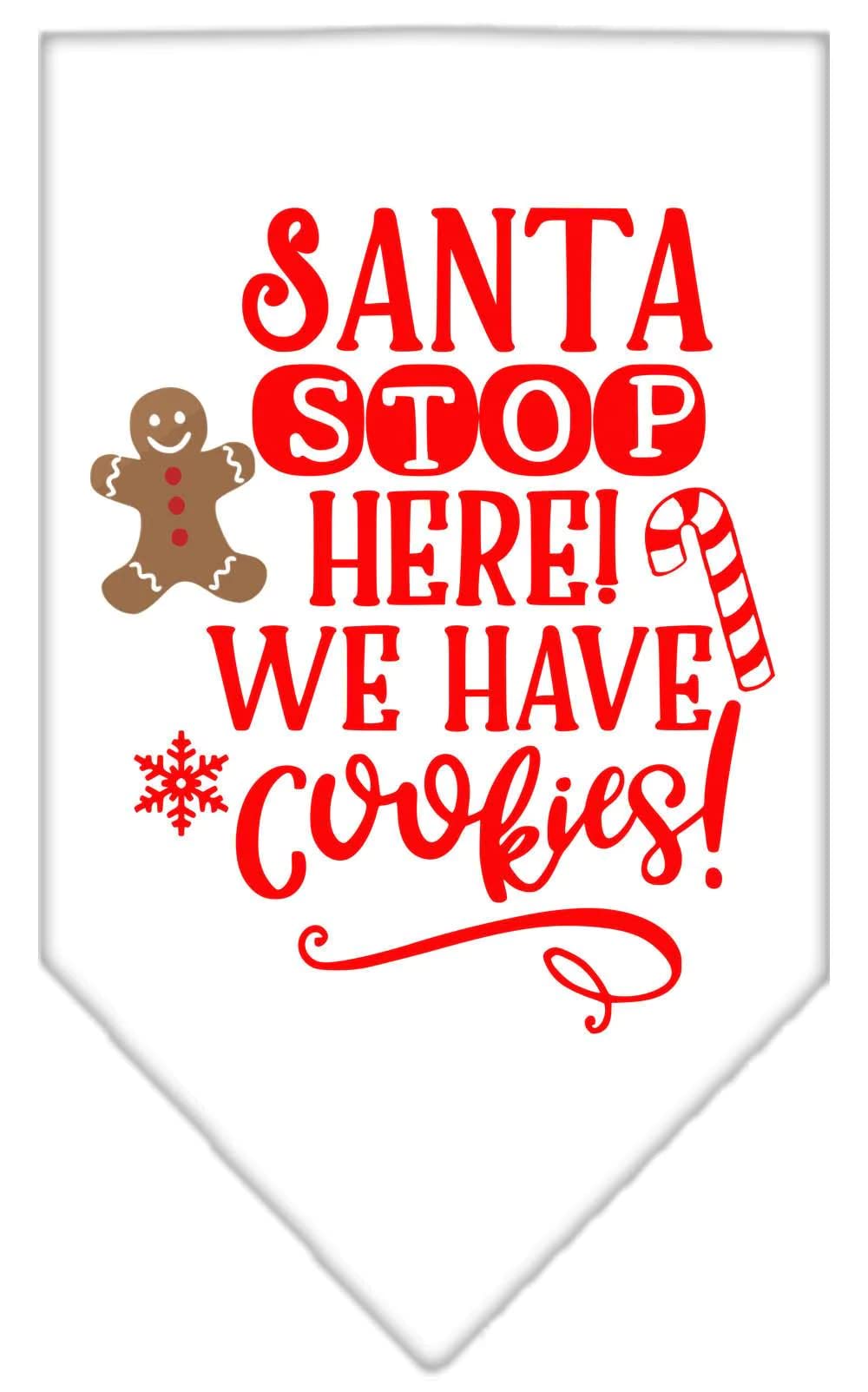 Christmas Pet and Dog Bandana Screen Printed, "Santa, Stop Here! We Have Cookies!" White Small