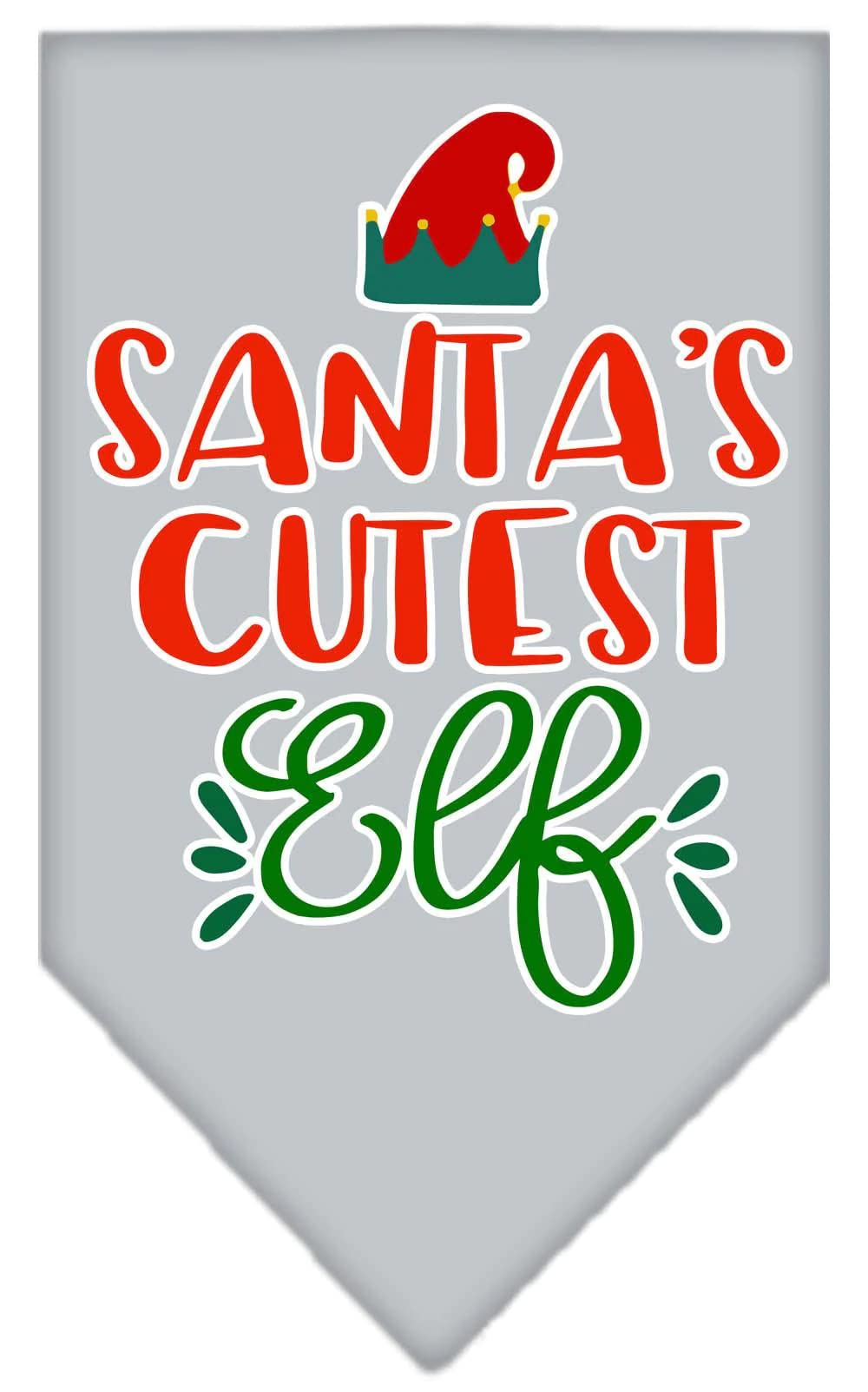 Christmas Pet and Dog Bandana Screen Printed, "Santa's Cutest Elf" Grey Large
