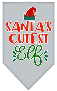 Christmas Pet and Dog Bandana Screen Printed, "Santa's Cutest Elf" Grey Small