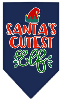 Christmas Pet and Dog Bandana Screen Printed, "Santa's Cutest Elf" Navy Blue Small