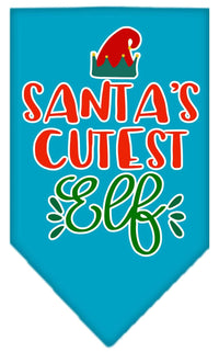 Christmas Pet and Dog Bandana Screen Printed, "Santa's Cutest Elf" Turquoise Small