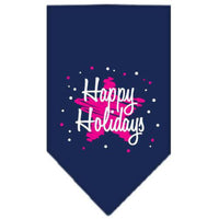 Christmas Pet and Dog Bandana Screen Printed, "Scribble Happy Holidays" Navy Blue Small