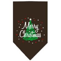 Christmas Pet and Dog Bandana Screen Printed, "Scribble Merry Christmas" Cocoa Large