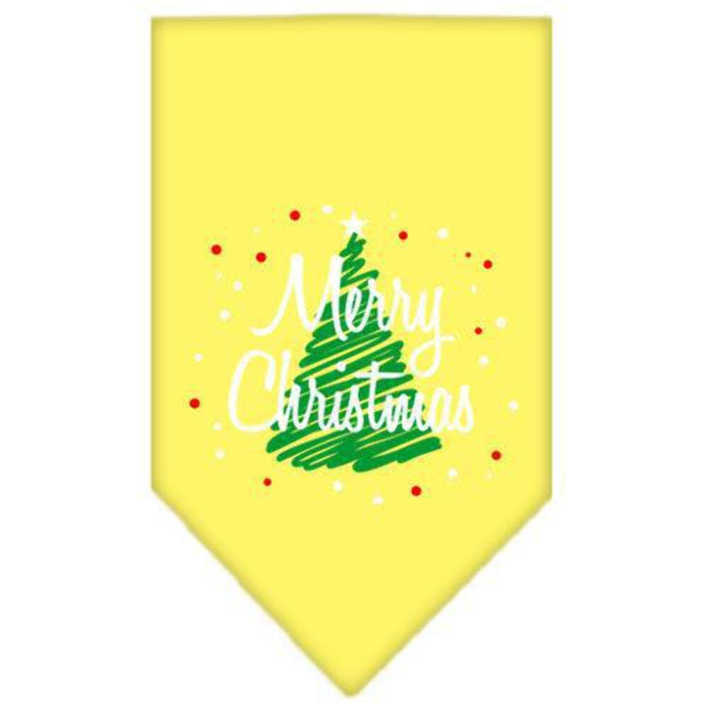 Christmas Pet and Dog Bandana Screen Printed, "Scribble Merry Christmas" Yellow Small