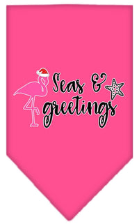 Christmas Pet and Dog Bandana Screen Printed, "Seas & Greetings" Bright Pink Large