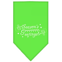 Christmas Pet and Dog Bandana Screen Printed, "Season's Greetings" Lime Green Small