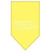 Christmas Pet and Dog Bandana Screen Printed, "Season's Greetings" Yellow Small