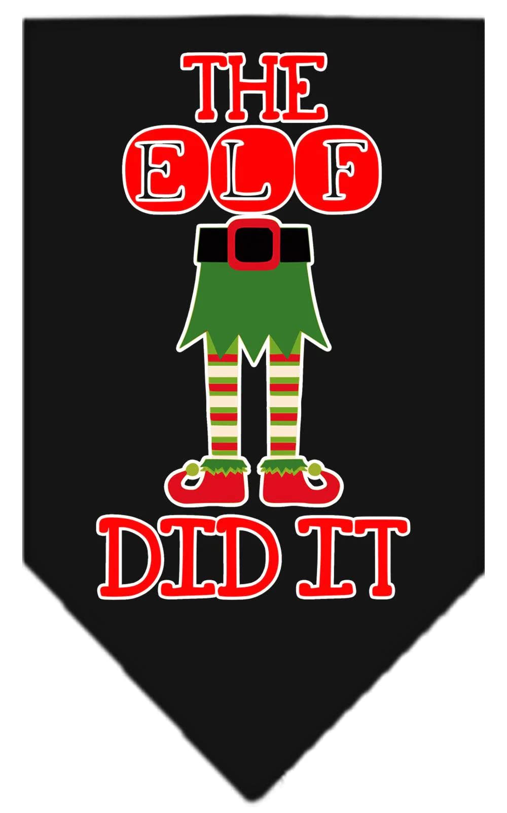 Christmas Pet and Dog Bandana Screen Printed, "The Elf Did It" Black Small