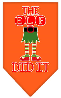 Christmas Pet and Dog Bandana Screen Printed, "The Elf Did It" Orange Small