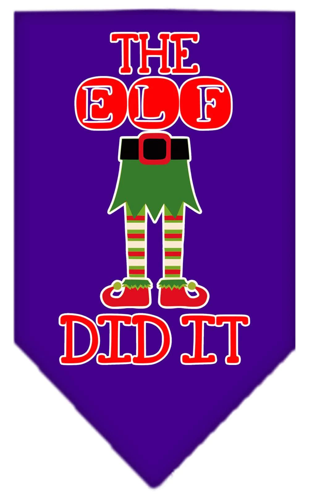 Christmas Pet and Dog Bandana Screen Printed, "The Elf Did It" Purple Large
