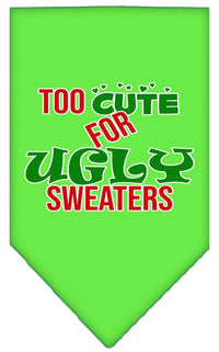 Christmas Pet and Dog Bandana Screen Printed, "Too Cute For Ugly Sweaters" Lime Green Small