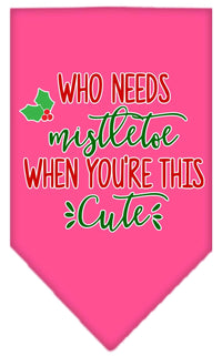 Christmas Pet and Dog Bandana Screen Printed, "Who Needs Mistletoe" Bright Pink Small