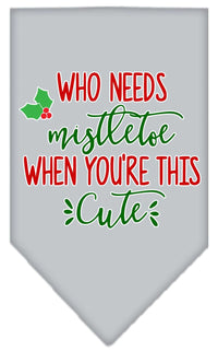 Christmas Pet and Dog Bandana Screen Printed, "Who Needs Mistletoe" Grey Small