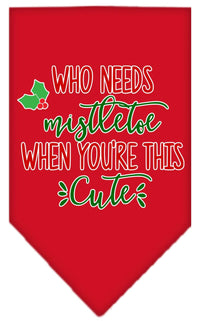 Christmas Pet and Dog Bandana Screen Printed, "Who Needs Mistletoe" Red Large