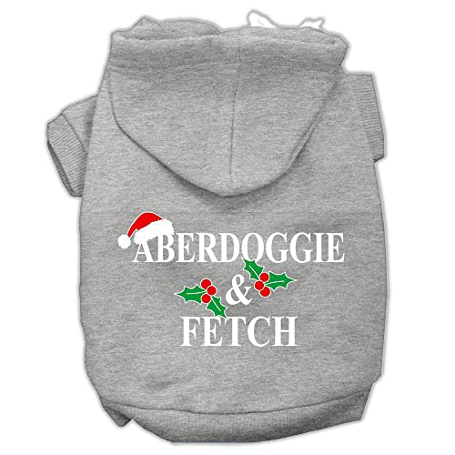 Christmas Pet Dog and Cat Hoodie Screen Printed, "Aberdoggie & Fetch" Grey XL (14-20 lbs.) \