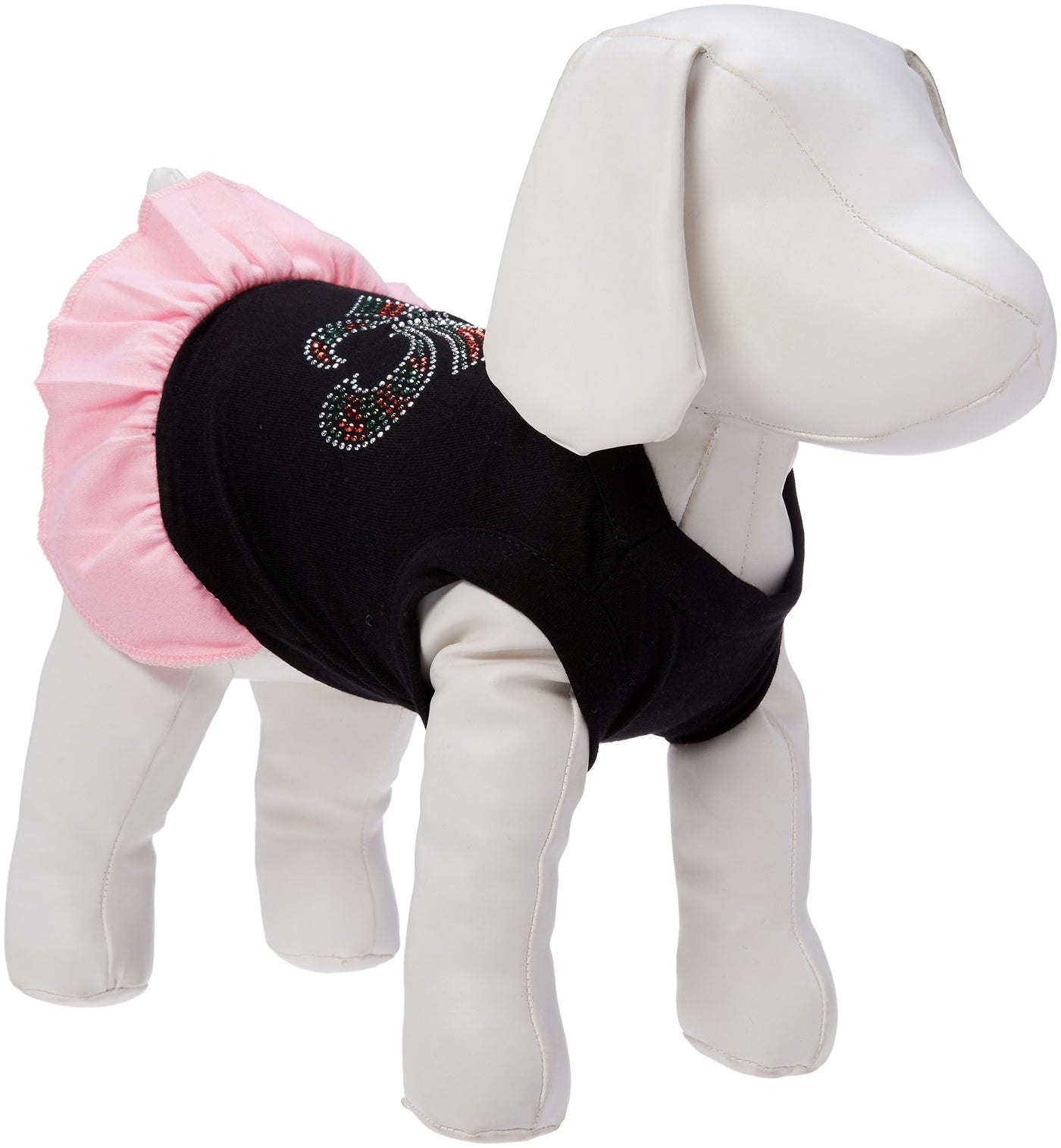 Christmas Pet Dog & Cat Dress Rhinestone, Christmas Fleur De Lis Black W/Light Pink LG (10-14 lbs.)