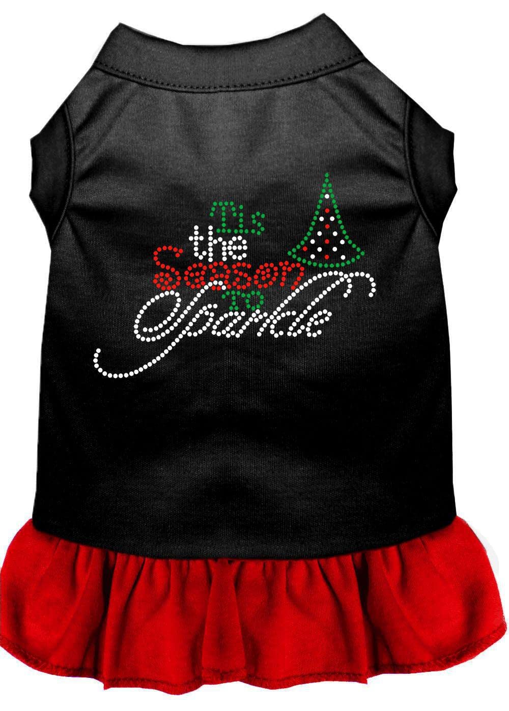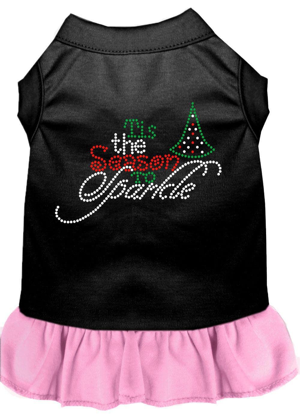 Christmas Pet Dog & Cat Dress Rhinestone, 'Tis The Season To Sparkle' Black W/Bright Pink 3Xl (25-35 Lbs.)