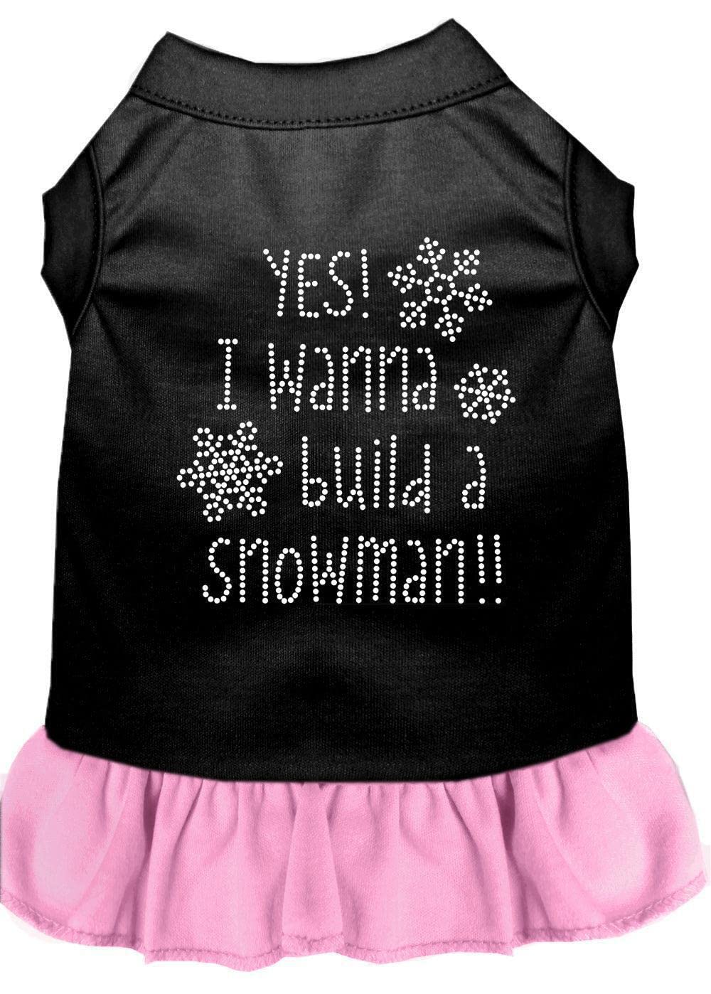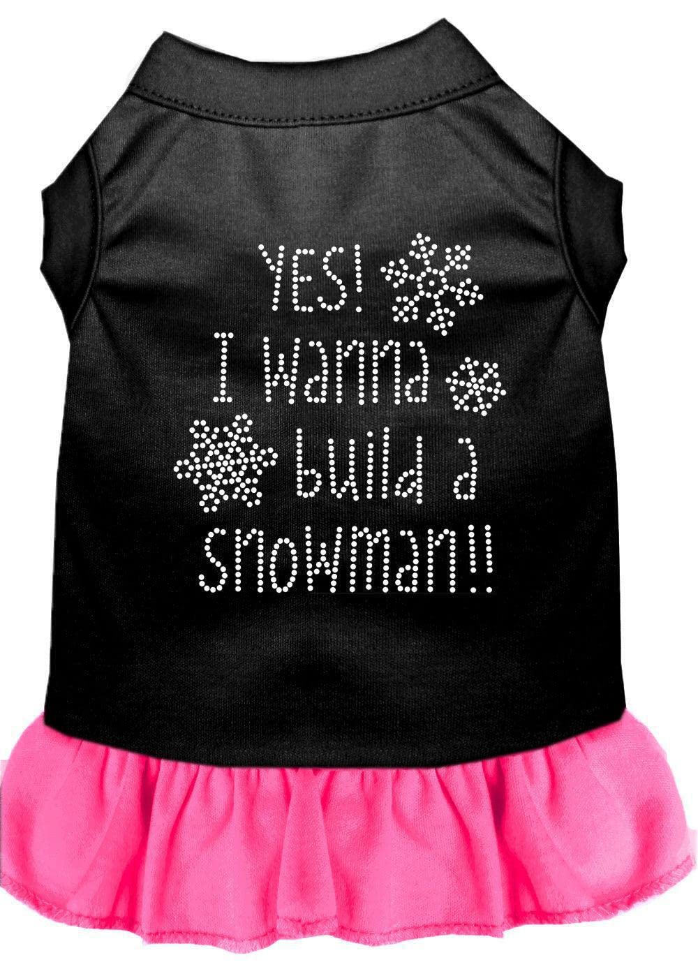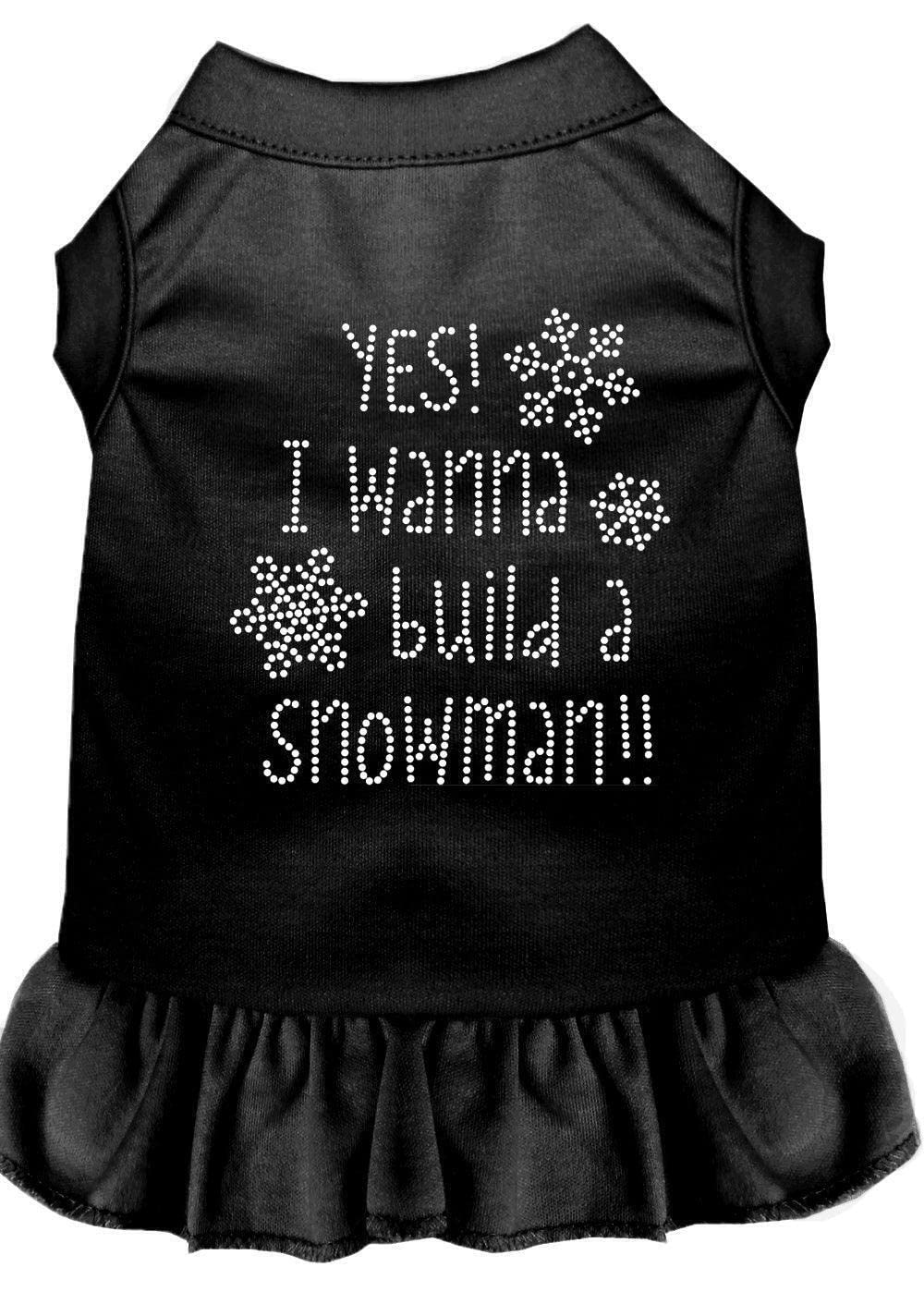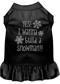 Christmas Pet Dog & Cat Dress Rhinestone, 'Yes! I Want To Build A Snowman' Black 2Xl (20-25 Lbs.)