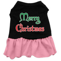 Christmas Pet Dog & Cat Dress Screen Printed, Merry Christmas Black W/Light Pink 3XL (25-35 lbs.)