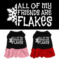 Christmas Pet Dog & Cat Dress Screen Printed, "All Of My Friends Are Flakes" Black W/Light Pink XS (0-3 lbs.)