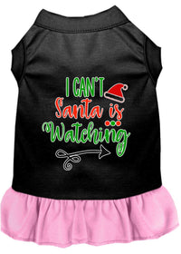 Christmas Pet Dog & Cat Dress Screen Printed, "I Can't, Santa Is Watching" Black W/Light Pink 3XL (25-35 lbs.)
