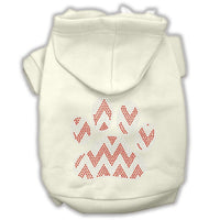 Q: What makes this hoodie different from other pet apparel?A: This hoodie stands out due to its unique 'Candy Cane Chevron Paw' design adorned with rhinestones, its super soft interior, and the double stitching for added durability. It combines style and functionality for your pet.