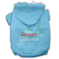 Christmas Pet, Dog & Cat Hoodie Rhinestone, 'Tis The Season To Sparkle' Baby Blue 3Xl (25-35 Lbs.)