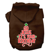 Christmas Pet Dog & Cat Hoodie Screen Printed, 'Go Jesus, It'S Your Birthday' Brown 2Xl (20-25 Lbs.)