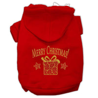 Christmas Pet Dog & Cat Hoodie Screen Printed, 'Golden Christmas Present' Red Xs (0-3 Lbs.)