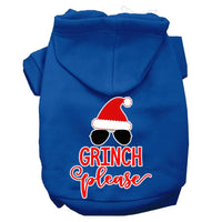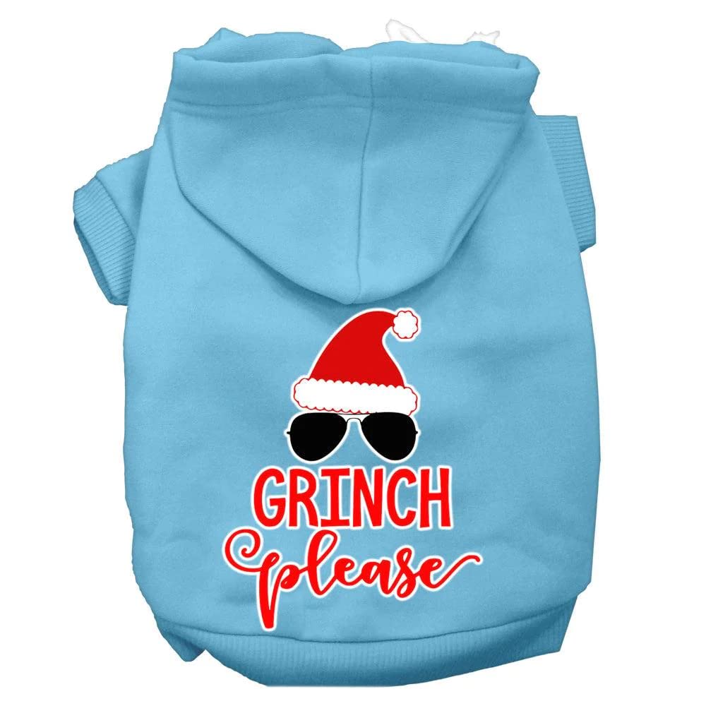 Christmas Pet Dog & Cat Hoodie Screen Printed, 'Grinch Please' Blue Md (6-10 Lbs.)