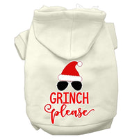 Christmas Pet Dog & Cat Hoodie Screen Printed, 'Grinch Please' Cream Md (6-10 Lbs.)