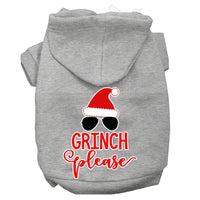 Christmas Pet Dog & Cat Hoodie Screen Printed, 'Grinch Please' Gray 2Xl (20-25 Lbs.)