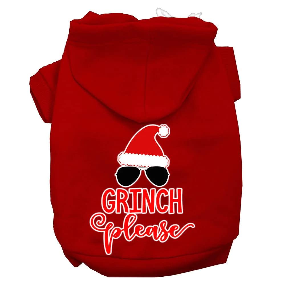 Christmas Pet Dog & Cat Hoodie Screen Printed, 'Grinch Please' Light Pink Xl (14-20 Lbs.)